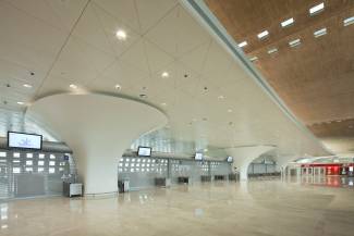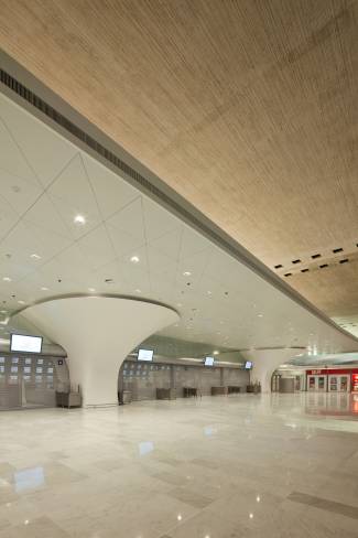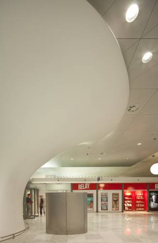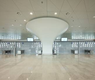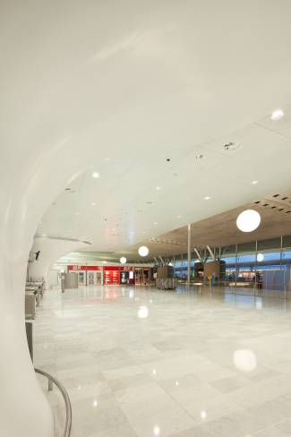 These pillars were built in brilliant HI-MACS® Alpine White, which makes the inside of the airport altogether brighter. With their sleek and innovative design, the pillars give off a soothing sense of serenity. They are also appealing in a rather sensual way, with their curves, tactile surface and their rounded silhouette.