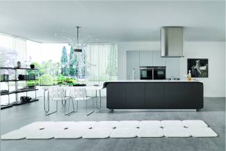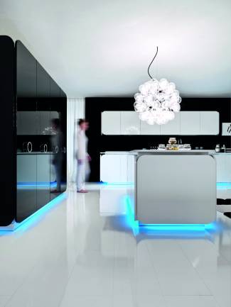 But as well as its hygienic and technical aspects - and as a result of the visionary creativity of architect Micheli - Euromobil has been able to produce a continuous surface with a soft, fluid design that is extraordinarily beautiful and has truly exceptional dimensions.