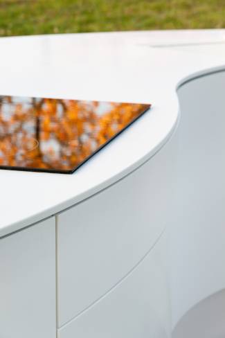 A key factor in implementing the plans drawn up of the Berlin trend kitchen in terms of design was the 4th point, the deformation of the material. Its so-called thermoformability means that HI-MACS® can be bent into practically any shape at 165 degrees Celsius. The material was the perfect starting point for creating a monolith.