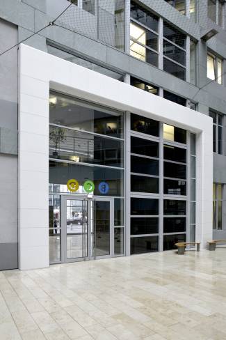 In the heart of Berlin, at the crossroads between the Schönhauser Allee avenue and Torstraße, stands the Schönhauser Tor: a modern executive and commercial complex. The original structure dates back to the 18th Century and it is situated along the Zoll- und Aksisemauer, the wall which used to divide the city of Berlin in two, built with a series of simple pillars and home to the customs office. The complex was used as an entrance gate to the royal granary, with a farm annexed to it. The Gate was demolished during the 19th Century. The styling of the new building, dated 1995, appealed first and foremost due to its combination of materials, structures and colours.
