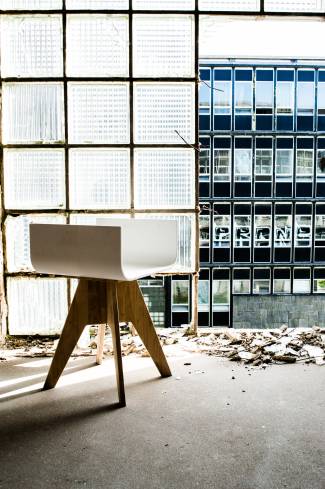 Presented at the international trade fair of Courtrai, in Belgium, Taboustool is a metropolitan and vaguely industrial-style piece, with a decisive and strong, clear-cut appearance. The frame is available in the over one hundred colours of HI-MACS®, for a unique and personal product.