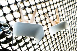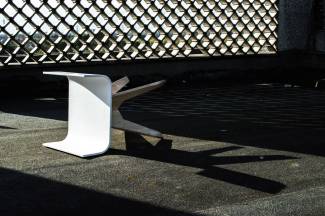In Taboustool, four flat legs, like ‘wings’, support a frame made of HI-MACS®; a plain ‘U’ shape, which streamlines the figure of the stool making it easy on the eye. The main structure is made of Hevea wood, from the rubber tree, which is among the most economical and ecological types of wood available on the market. The use of solid and hollow elements created by the joints of the four legs, and the extensive space between the two ends of the armrest frame, makes Taboustool dynamic, ‘stable but light’ and attractive.