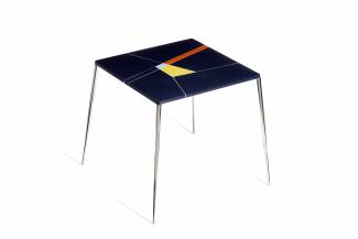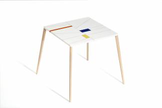 In yellow, orange and blue, as well as red, white, grey and black, the HI-MACS® pieces, assembled like Lego® in a logical/geometric design, breathe life into tops and surfaces using an array of harmoniously balanced colours. These deliberately discordant elements are supported by aesthetically clean and minimalist bases available in beech, chrome or satin metal finish, or white or black varnish.